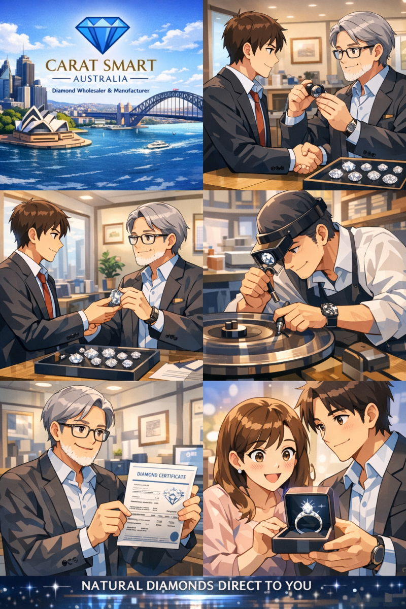 At Carat Smart Australia, we believe buying a natural diamond should be transparent, educational, and truly special. As both a diamond wholesaler and manufacturer, we guide our clients through every step of the journey — from sourcing to final certification.